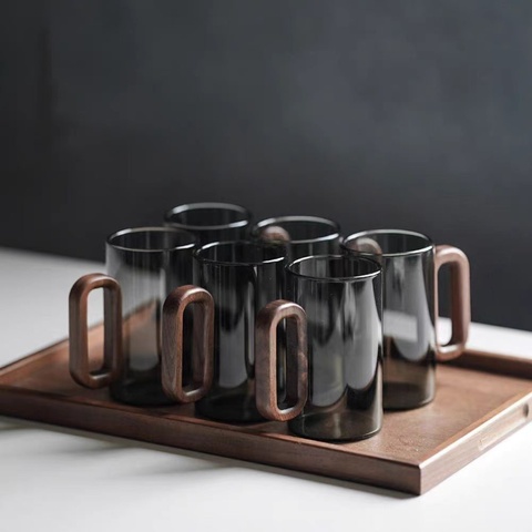 مقبض خشبي إبداعي أحادي الطبقة من الدخان الرمادي الآمن كوب شرب كبير للضيوف