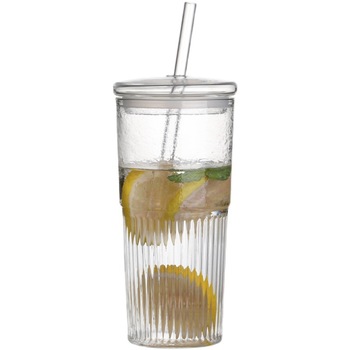 كؤوس مربعة جديدة 240 مللي مع شفاطات زجاجية كؤوس صباحية للحليب